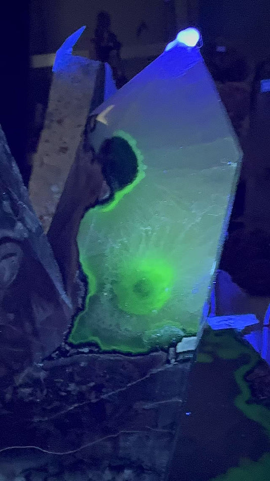 A00169 VERY beautiful green uv reaction volcano agate with good painting double point
