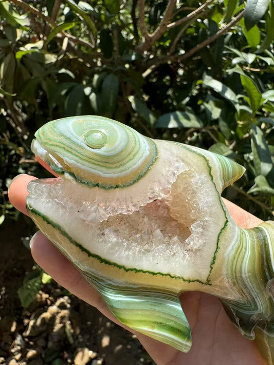 A00170 VERY beautiful druzy green onyx agate shark animal carving with good painting