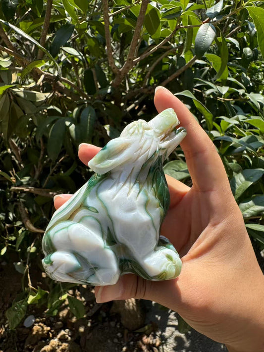 A00171 VERY beautiful druzy green onyx agate wolf animal carving with good painting
