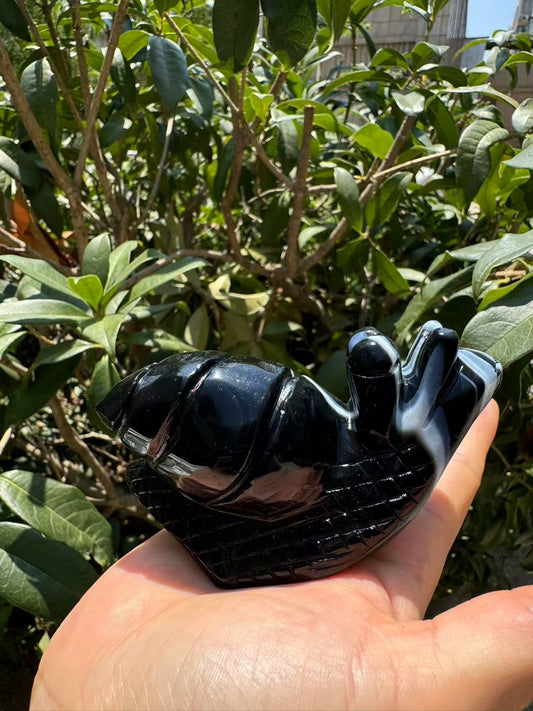A00172 VERY beautiful druzy black onyx agate snail animal carving with good painting