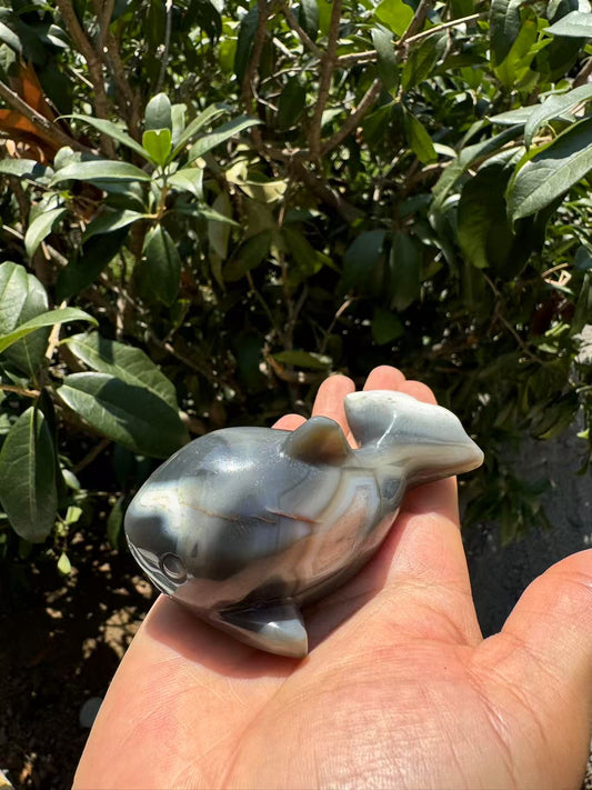 A00173 VERY beautiful oca agate whale animal carving with good painting