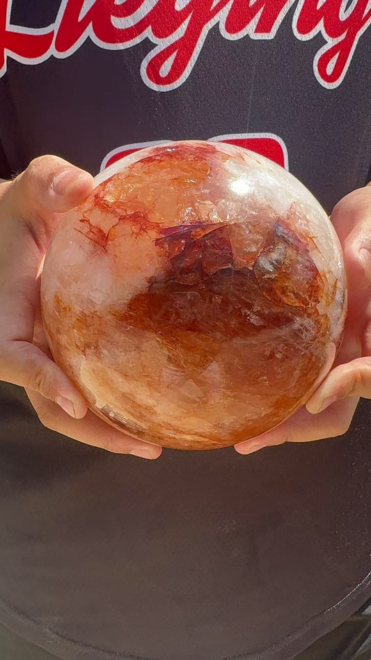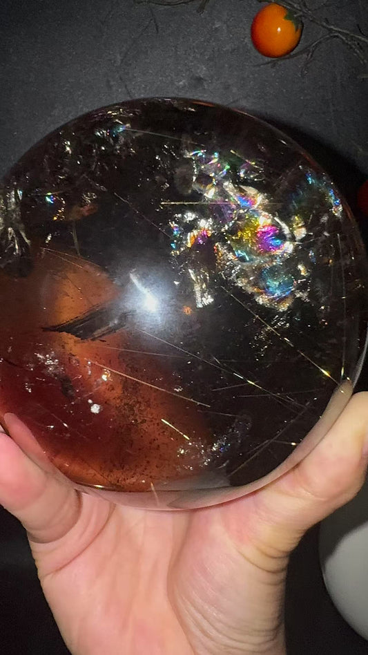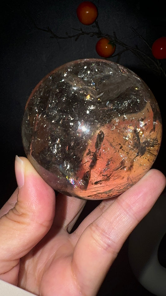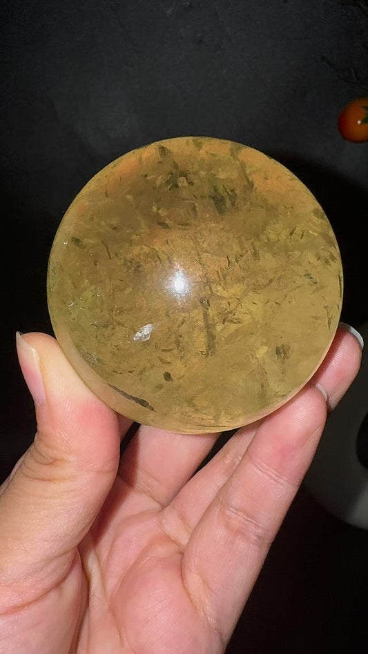A00185 Rare beautiful phantom citrine sphere with rainbow