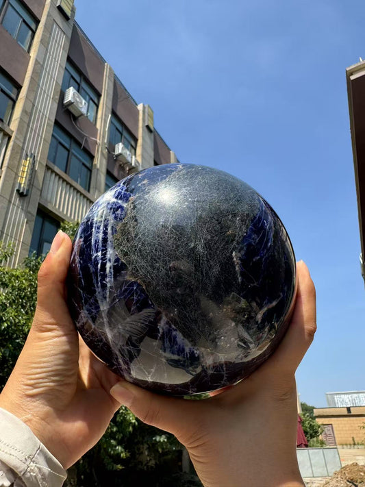 A00177 rare natural shiny star moon flash blue apatite high quality xxxl sphere