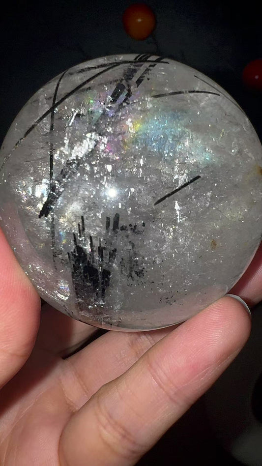 A00187 Rare natural amazing rainbow Asai clear quartz sphere