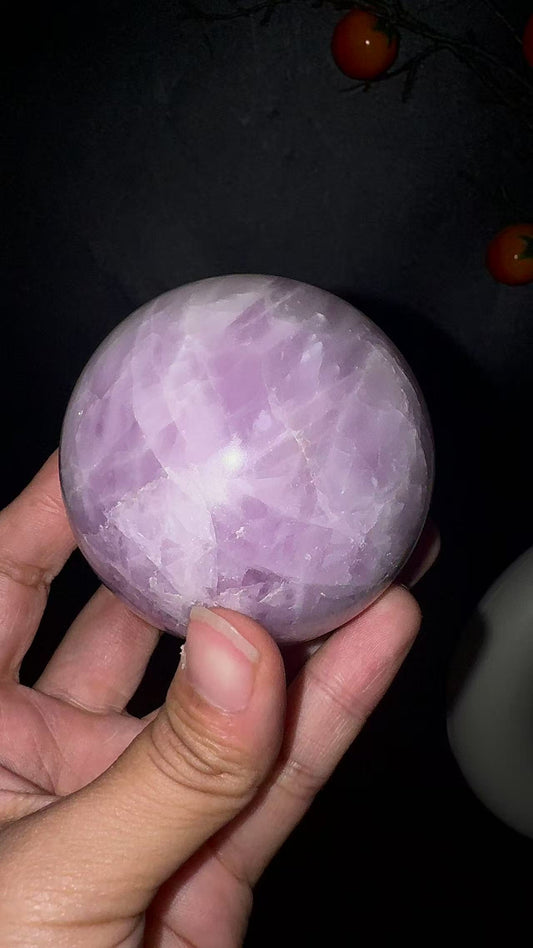 A00183 Rare natural highest purple kunzite sphere with amazing cateye flash