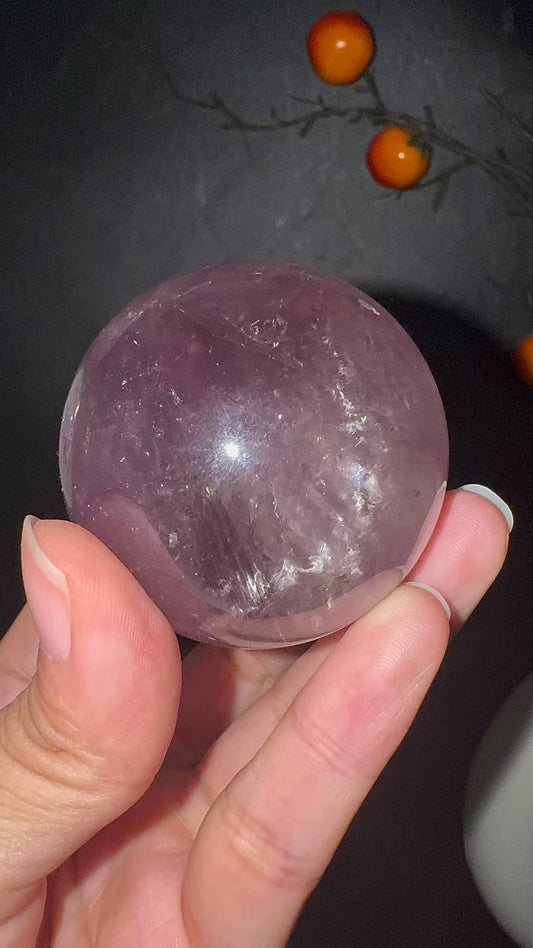 A00184 Rare natural lavendar purple amethyst sphere with rainbow and water route