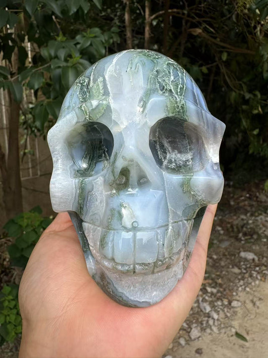 A00197 beautiful druzy green blue moss agate skull xxl size