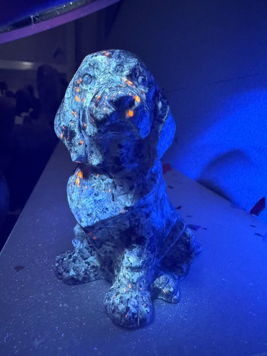 A00199 beautiful yooplite uv reaction dog carving