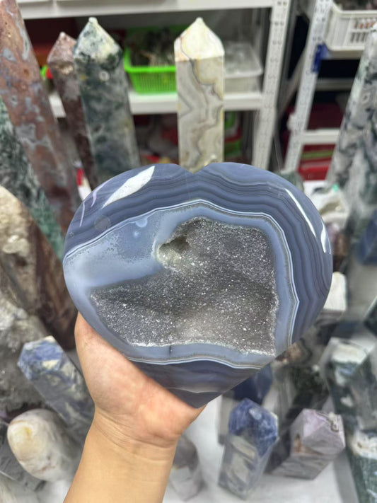 A00202 natural lace agate heart carving xxl size