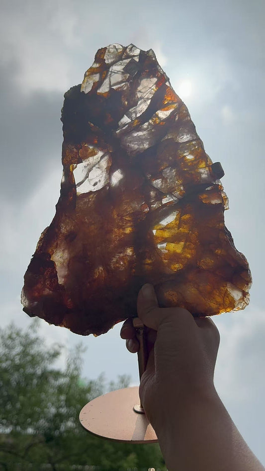 A00207 Rare natural highest quality fire quartz mixed golden healer slab