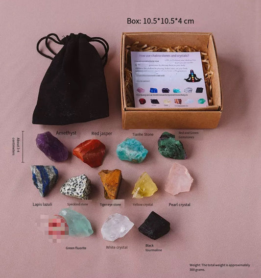 A00211 Rare natural highest quality natural seven(12 pcs) chakra color raw stone aromatherapy stone diffusion stone set gift box