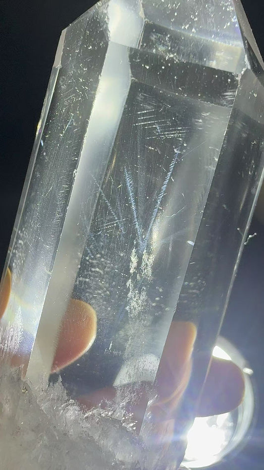 A00223 Rare natural highest quality TRANSPARENT blue feather needle clear quartz tower