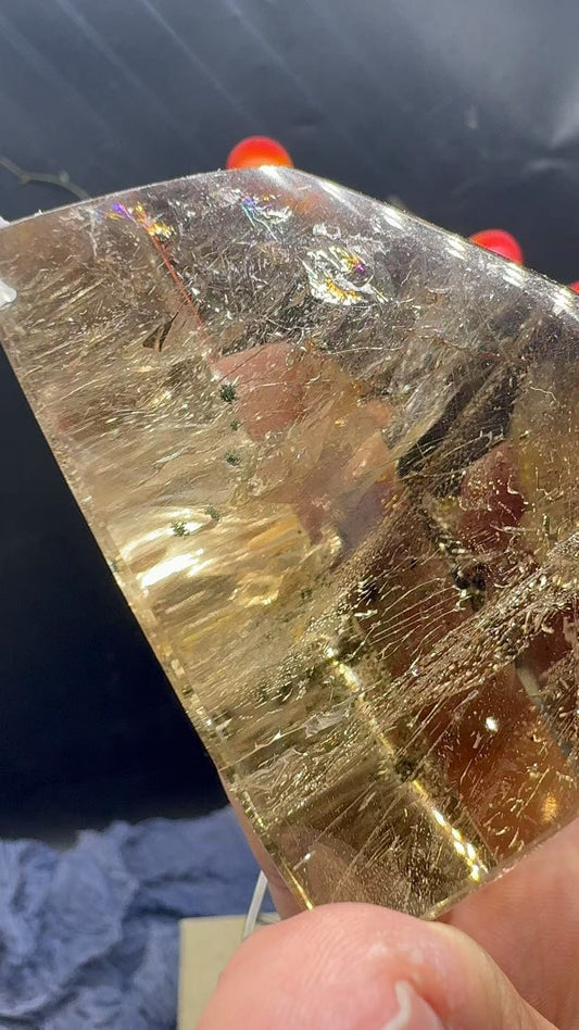A00226 Rare natural highest quality rainbow citrine smokey freeform with hematite inside