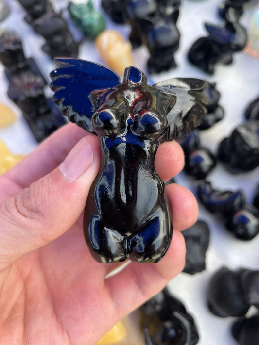 Angel body,obsidian,fluorite,white jade&sun stone