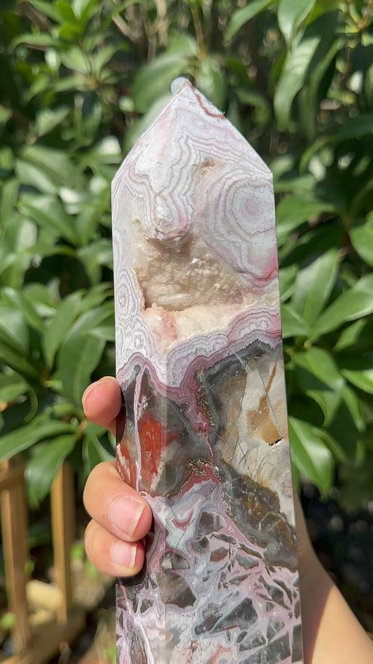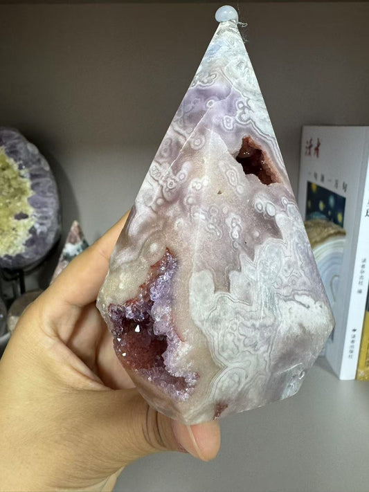 A00134 rare beautiful high quality two color druzy pink amethyst cone shape