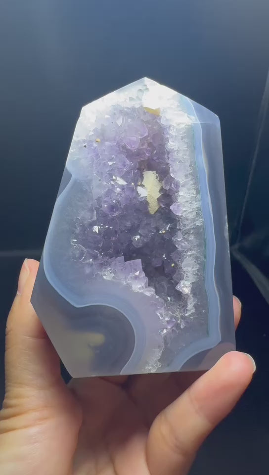 A00015 Natural Amethyst durzy agate tower mixed calcite point