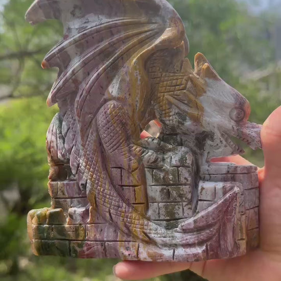 A00031 AAA PINK 8th OCEAN JASPER dragon castle carving